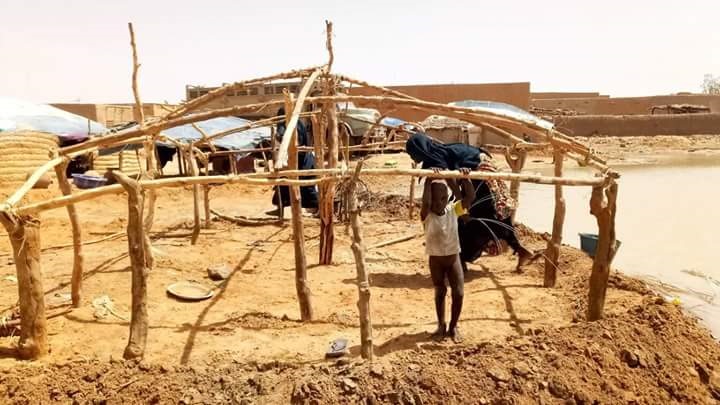 Construction des hangars pour des personnes déplacées et des sans abris.